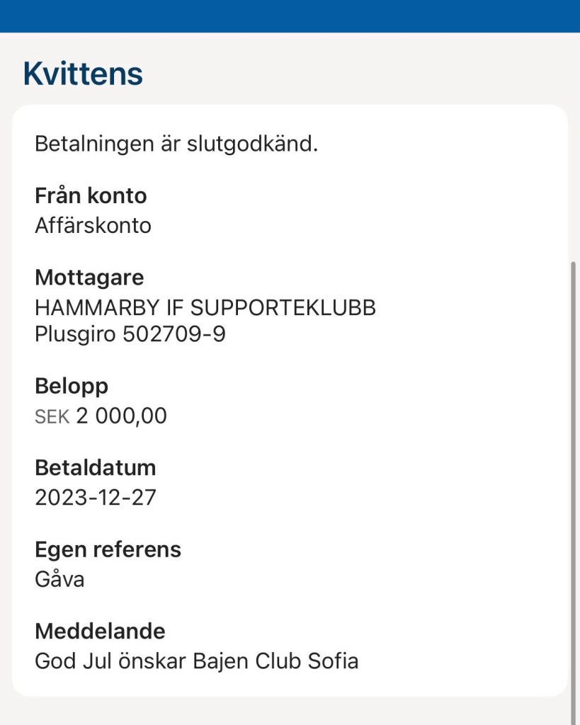 - Hammarby IF Supporterklubb, som delar ut stipendier till ungdomslag i hela föreningen för att kunna genomföra aktiviteter. Normala sporter ska inte vara en klassfråga, men det är de tyvärr nuförtiden.