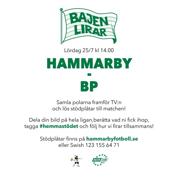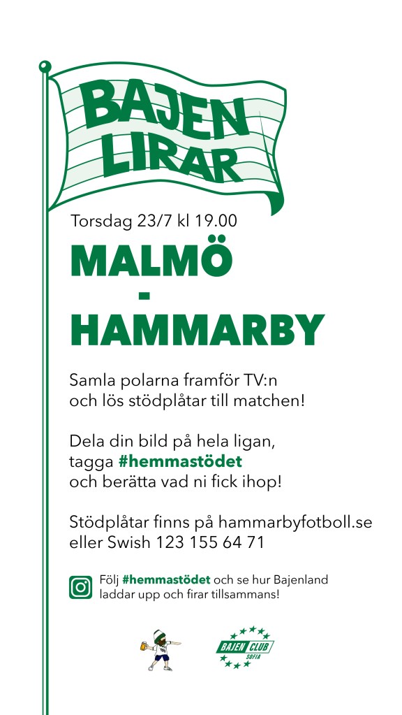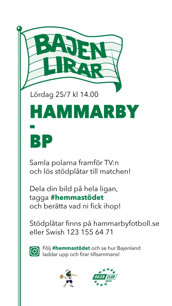 Att sakna läktaren är ingen ursäkt för att inte stötta på matchdag. Och vissa saker kan vi ju fortfarande göra. Bajen lirar, så samla polarna framför TV:n, det finns inga förbud mot att se matchen ihop och surra en stund. Men glöm inte inträdet!