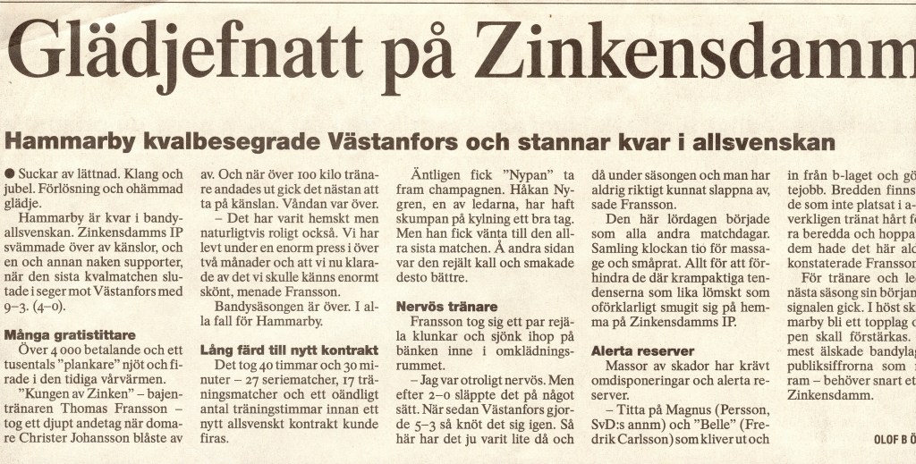 Sammantaget blev det rätt många inträden på vintern för en femtonåring, och skulle man planka nånstans låg ju Zinken såklart bra till. Som artikeln antyder så kunde det vara horder av hemmasupportrar som klättrade in. Ett år tröttnade vi på att löpa från vakterna och skramlade till en säsongsplåt, ett litet plastkort som vi bakade in i en snöboll och lobbade över muren till näste man.